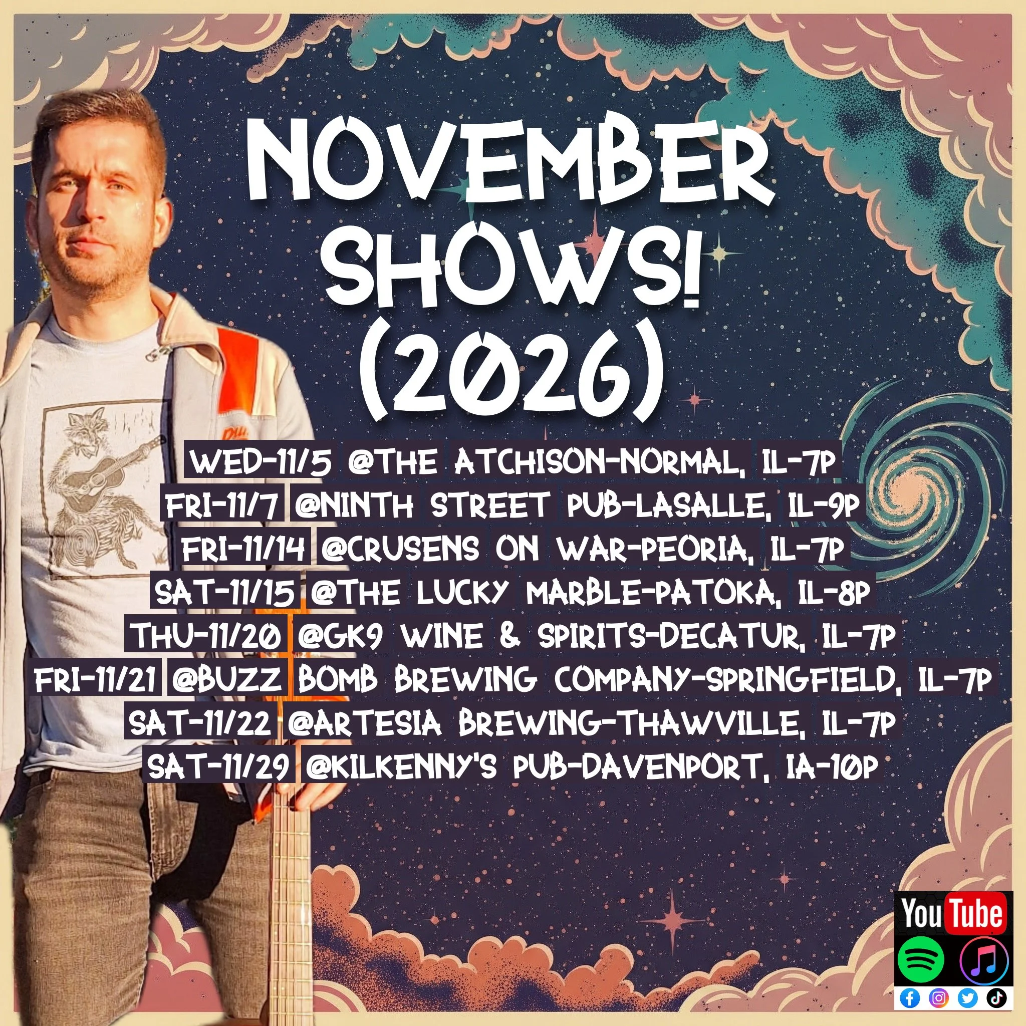 In an intriguing twist, TyJon Charlie unveiled his inaugural solo endeavor, "Pandemic Relief (LIVE near Normal)," in February 2022. This was a live album meant to be a reflection of the weird world we found ourselves in during the pandemic. Furthermore, this was his first vinyl release. Later that year, he released a full length live album that was recorded in his one-man band performance style. It was recorded live in Peoria on their local PBS station. For both of these projects there are live videos up on YouTube to correspond with these audio releases, so you can watch them, in addition to listening. Shortly after that TyJon released some live videos on YouTube with The Middle of Nowhere Music that were also released to Spotify.